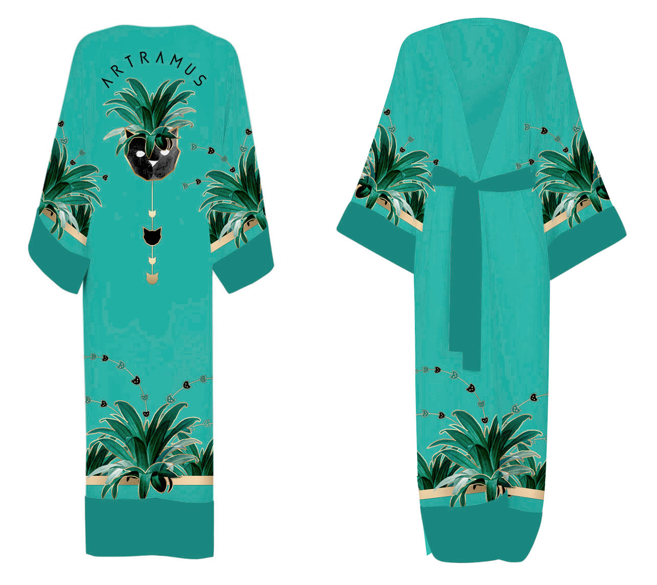 A long caftan crafted from premium-quality natural silk, featuring a unique designer print — an elegant and versatile piece, perfect for both sophisticated everyday wear and refined evening ensembles.