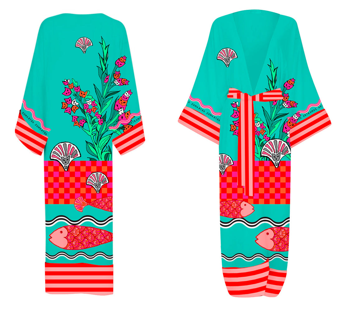A long caftan crafted from premium-quality natural silk, featuring a unique designer print — an elegant and versatile piece, perfect for both sophisticated everyday wear and refined evening ensembles.
