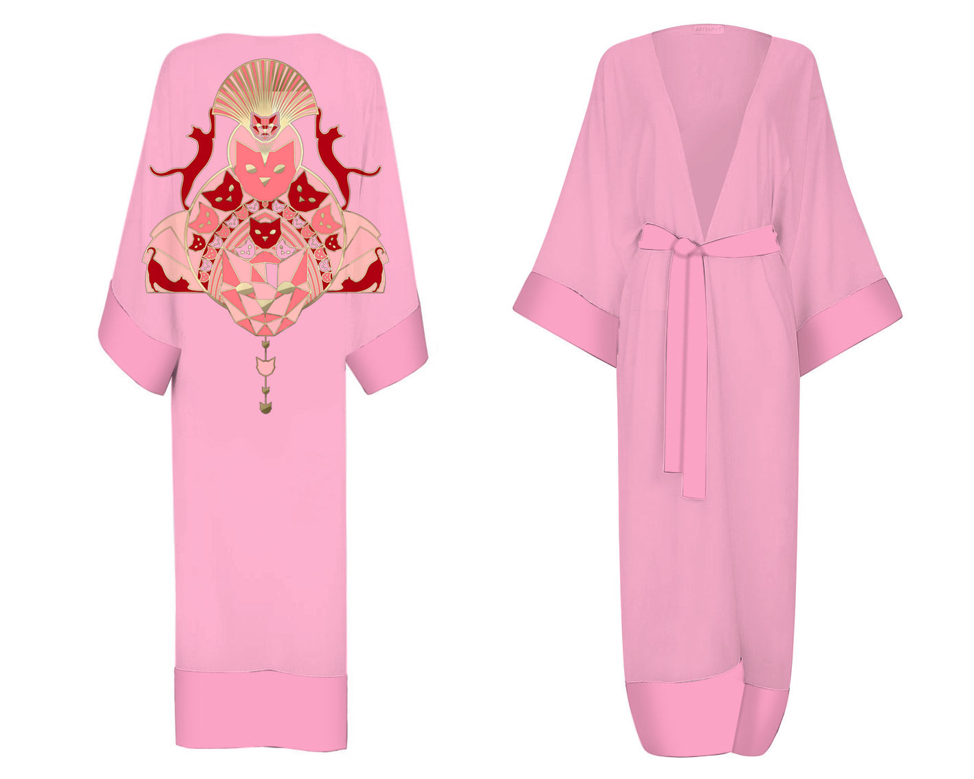 Youthful and fresh tenderness exudes from the beautiful 'Rosé' in silky matte Italian silk. The truly royal cat design beautifully highlights your soft femininity. Whenever and however you want to express it, whether at an event, party, or in a very private setting, worn casually or nobly.