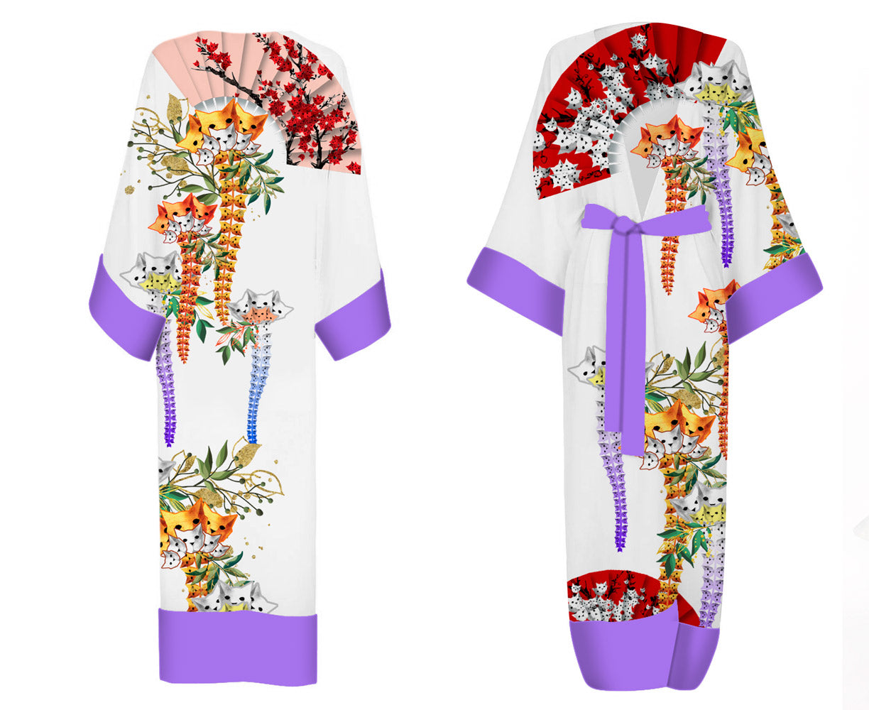 A long caftan crafted from premium-quality natural silk, featuring a unique designer print — an elegant and versatile piece, perfect for both sophisticated everyday wear and refined evening ensembles.