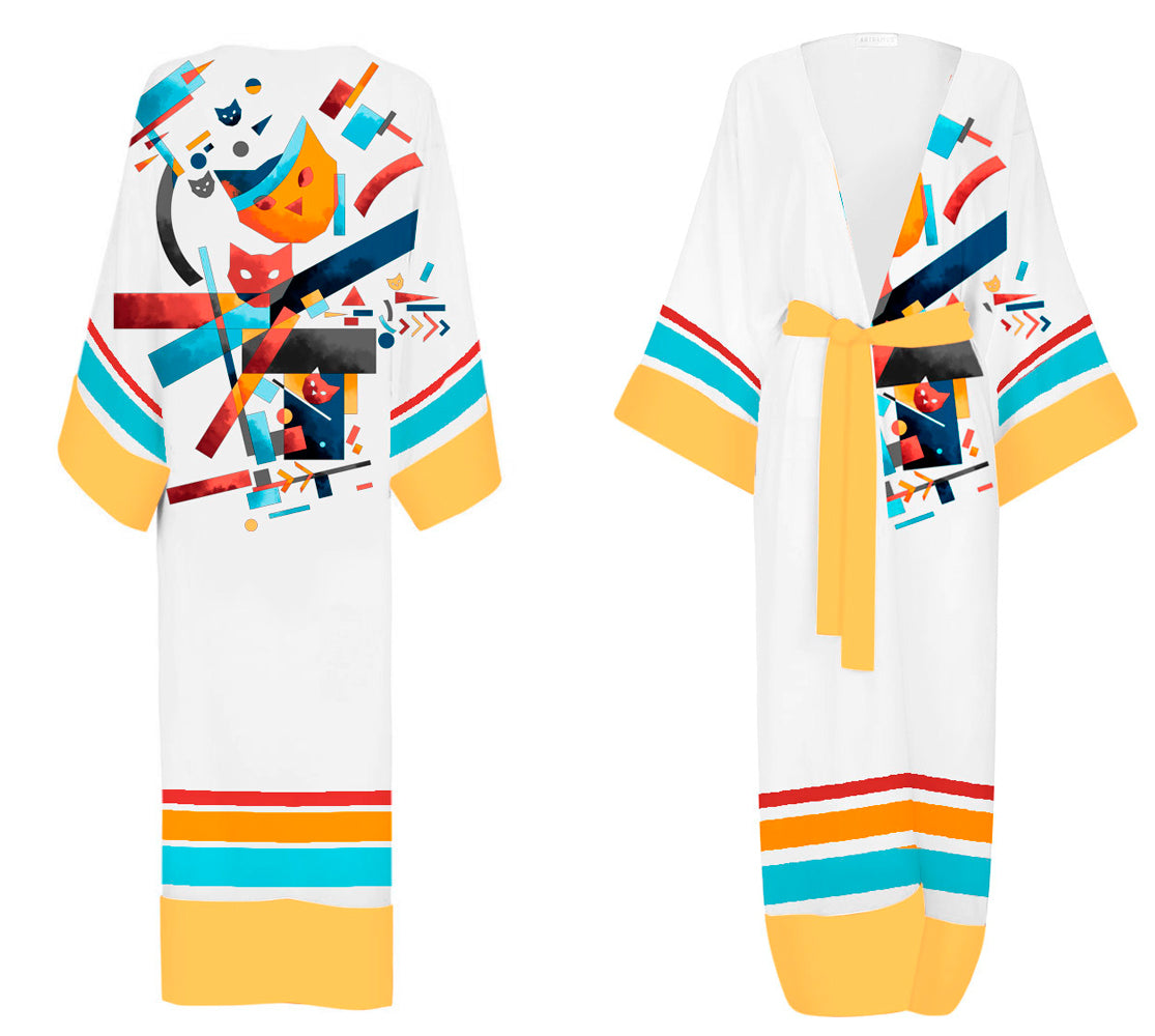 A long caftan crafted from premium-quality natural silk, featuring a unique designer print — an elegant and versatile piece, perfect for both sophisticated everyday wear and refined evening ensembles.